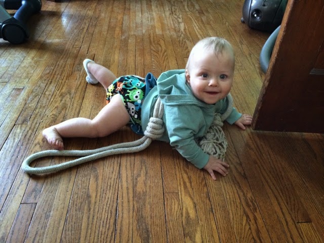 Cameron is so busy all the time. Getting his diaper on is a struggle some days. Pants? Yeah right. Both socks? Good luck.
